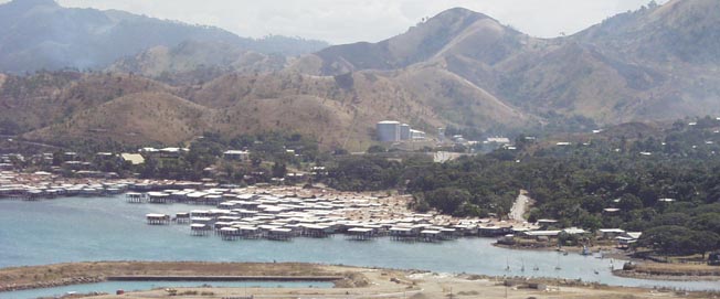 ポートモレスビー・ハーバーの水上集落 [パプアニューギニア] 水上集落の遠景-画像の右端。 [拡大画像: x5501.jpg][拡大画像x5502.jpg]