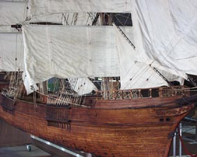| 横浜大桟橋の国際旅客ターミナルに展示されている帆船模型 [2004.3 横浜大桟橋にて] |