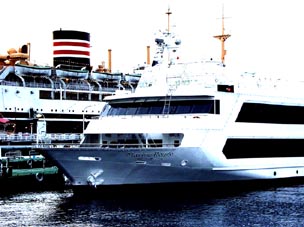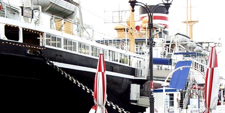 「大桟橋国際客船ターミナル」(ちょうど1周年記念)、どれをとっても絵になるエキゾチックな風景である。 この港から何万人の移住者がシアトル、ハワイ、米国本土、ペルー、ブラジル、アルゼンチンなどの南米に夢を抱いて、単身であるいは 幼子を連れ立った家族が旅立ったであろうか。 2004年3月の日暮れがせまる頃、氷川丸をいろんなアングルからその雄姿を日が落ちるまで堪能した。 [拡大画像(x9495.jpg)][拡大画像(x9494.jpg)][拡大画像(x9496.jpg)] |