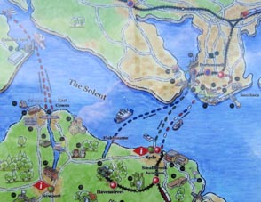 画像は英国南部沿岸の古い海軍港市ポーツマスと、その沖合に浮かぶワイト島のライド (Ryde) とを結ぶ「エアクッション船」である。