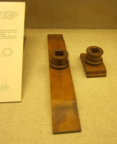 である。中国語で「十字測天儀」という。16世紀から18世紀後半期まで用いられた。その用い方は図絵のとおりである。 長棒に対して直角に交わる短棒(下の画像 1 )を差し込みスライドさせる。 長棒を天体に向けて構える。そして短棒をスライドさせながら、その上端を天体に視準させる。 他方の下端は水平線上に位置させる。短棒の両端が天体視準線と水平線に位置した時に、長棒上に刻まれた目盛りを読む。 その度数が天体高度となる。