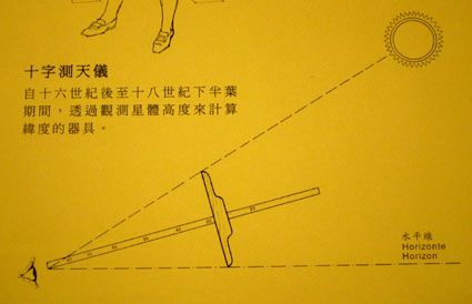 クロス・スタッフによる天体高度の測定(図絵) [マカオ海事博物館]