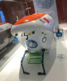 Unknown maker, China, 2013 FRP and other materials The self-propelled Jiaolong, built by the China Ship Scientific Research Centre (CSSRC), is capable of diving to 7,000m. It has a crew of three. On June 27th 2012 it reached 7,062m in the Mariana Trench. Gift of the China Shipbuilding Industry Corporation ・ 2011年7月、有人深海潜水艇「蛟竜」、マリアナ海溝で深度5,188mへの潜水に成功する。 ・ 2012年6月15日、深度6,671mへの潜水に初めて成功し、日本の有人深海調査艇「しんかい6500」による潜水記録6,527m (1989年) を上回る。 ・ 2012年6月24日には、同海溝で深度7,020mの潜水に成功する。 ・ また、今後は深度10,000m以上への有人潜水を目指し、11,000m級有人超深海潜水艇の建造を視野に入れて技術開発に取り組む。 中国の数10年前の海洋科学技術開発レベルからすれば、7,000m級潜航はまさに歴史的偉業の達成に違いない。 21世紀中には、中国は中部太平洋などでマンガン団塊をはじめとする深海底鉱物資源を採鉱する超大型浮体構造物を浮か べ、海洋フロンティアでの国家的発揚・プレゼンス・覇権を誇示し、かつ資源を確保しているかもしれない。