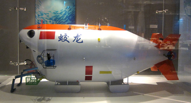 画像に写るこの3人乗り有人深海潜水艇「蛟竜」(こうりゅう; Jiadong, Jiaolong)と、それによる深海への有人潜水である。