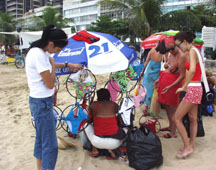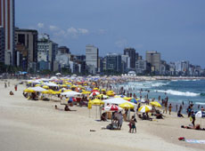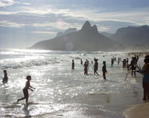 南米ブラジルのリオ・デ・ジャネイロの海岸といえば、先ず思い浮かべるのはコパカバーナ海岸 (Praia de Copacabana) であろう。 白砂海岸が高級ホテル⌈レ・メリディアン・コパカバーナ (Le Meridien Copacabana)⌋ の建つところから コパカバーナ要塞 (Forte de Copacabana) までの約3kmにわたり続く。弓形を描く美しい海岸で、世界に知られる。 同海岸の南端から数百メートル内陸部を横切ると再び白砂の海岸が現われる。そこはアルポアドール海岸 (Praia do Arpoador) と呼ばれる。 そこから 1 kmほど浜辺をたどるとイパネマ海岸 (Praia de Ipanema) となる。さらに2kmほど進むと名前が変わりレブロン海岸となる。 レブロン海岸の先にはドイス・イルモンス (Dois Irmãos; 二人の兄弟の意) という双頭状の岩山が海際からそそりたつ。 コパカバーナ、イマネマ海岸では、若者たちがピーチバレーやフットサルを、そして子供らがボール蹴りに興じる。大勢の家族連れなどの 老若男女が肌を焦がす。タンガ (tanga) と呼ばれる超ビキニを身に着けた若い女性たちが自慢のボディー・ラインを それとなく披露しながら闊歩する。かと思えば、子供用の浮き輪やファッショナブルな女性用タンガの売り子たちが通り過ぎる。 頭上からは太陽がギラギラと照りつけ、海水浴客らの肌を焦がす。時に肌が火傷しそうで、さすがにビーチパラソルの下に逃げ込みたくなる。 朝方は人もまばらであったが、陽が高くなれば浜は人・人・人で埋め尽くされ、陽気な笑顔・笑顔・笑顔で溢れる。南米のパラダイス そのものである。画像1-3は、イパネマ海岸で切り撮った風景である。 [画像撮影 2003.12.27-2004.1.3/2015.9.5 記][拡大画像: x26980.jpg][拡大画像: x26981.jpg][拡大画像: x26982.jpg] |