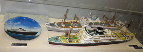 ![]() 同センターで展示される⌈ぶらじる丸⌋ (手前) と⌈あるぜんちな丸⌋の船模型。 [拡大画像: x27282.jpg] |
