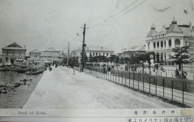 画像3には神戸海岸通り(Bund of Kobe)の東からメリケン波止場を臨む、とのキャプションが記されている。