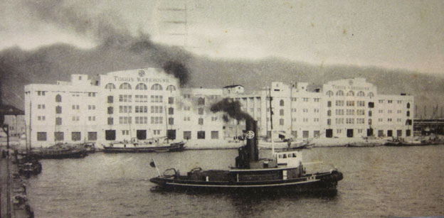 [拡大画像: x27260.jpg] 画像 2 は、「東神倉庫神戸支店新港倉庫 The Toshin Soko Kaisha's New Warehouses, Kobe」である。 画像に写る倉庫の最上部には「Toshin Warehouse」と書かれている。1万トン級の船が2隻接岸できる桟橋に5階建ての倉庫が横に つらなる。[拡大画像: x27261.jpg][拡大画像: x27262.jpg:説明書き]