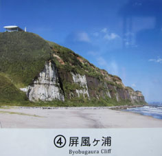 千葉県の九十九里浜沿いに南に向かえば御宿、勝浦、鴨川、野島崎へといたる。北東に向かえば、屏風ヶ浦(Byobugaura Cliff)、
