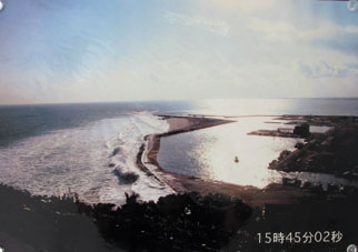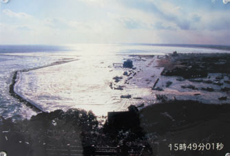 [2011年の東日本大震災による飯岡漁港への津波襲来写真の展示]