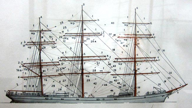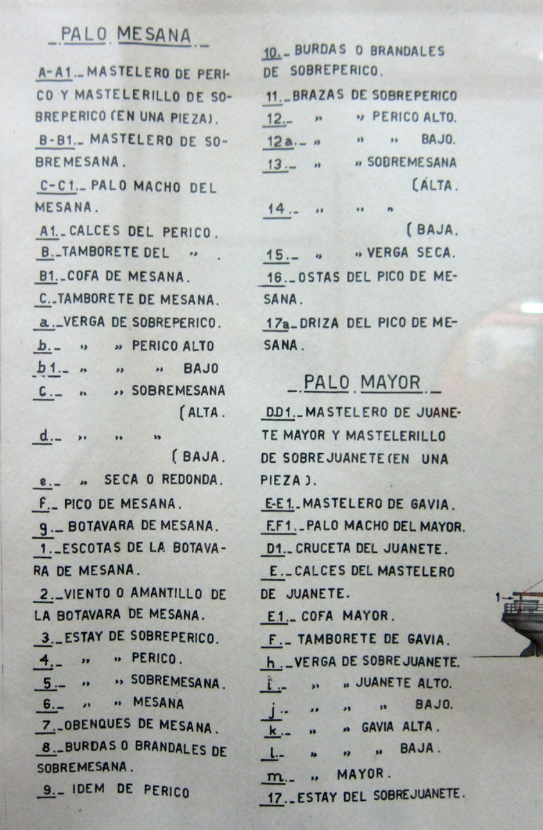 1-2. マスト名称: palo mesana, palo mayor, palo trinquete