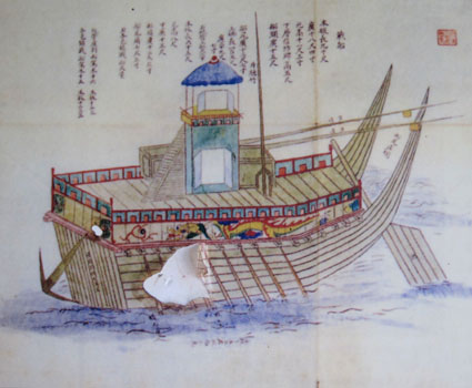 その幾多の海戦において、李舜臣将軍 (General Yi Sun-shin: 1545-1598) が率いる朝鮮水軍は豊臣水軍を撃破するなどして、自国を