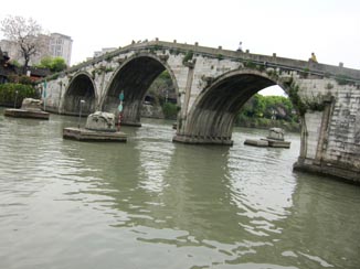 ![]() 杭州(Hangzhou)市内を流れる京杭大運河に拱宸橋 (こうしんきょう・Gongchen Bridge) という橋が架かる (左画像)。 画像2&3は、その橋上から眺望した京杭大運河の風景である。ひっきりなしに大型のバージが行き交う。 拱宸橋の最初の建設は明代の崇貞4年 (1631年) である。橋は石製アーチ型で、その長さは約92メートル、高さは約16メートル。 橋は大運河の最南端を示すランドマークであり、また大運河の南の起点でもある。 [大運河の建設・舟運などに ついて→ To be continued]