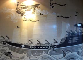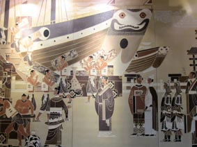 1 2![]() 1. 鄭和紀念堂。 [拡大画像: x27641.jpg] 2. 図絵:鄭和宝船への船積み。 Loading Goods: In the Liujia port in Taicang, delicate silk products, porcelain and tea were loaded onto the ships and they were ready to go. [拡大画像: x27644.jpg]