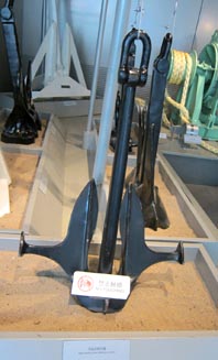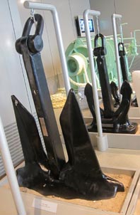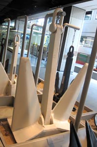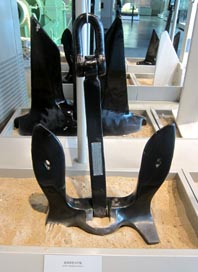 画像は上海・中国航海博物館において展示される船のいろいろな錨 (13種類) である。