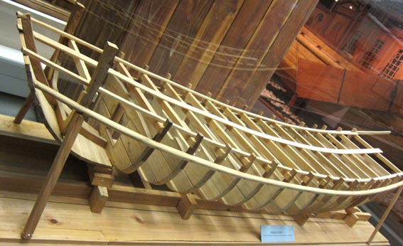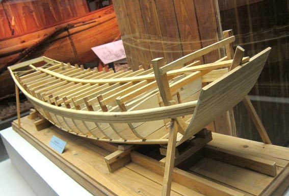 展示では、模型を用いてその隔壁構造や建船工程が分かるように工夫されている。また、木造船建造に関する技術、原木の切り出し、