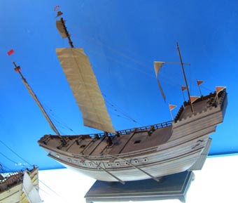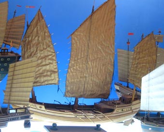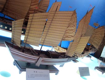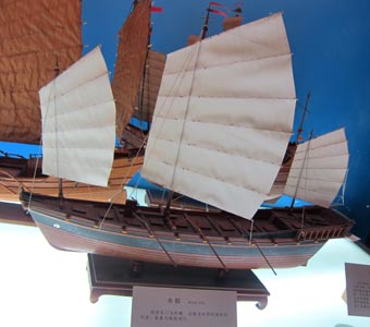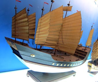 南京・静海寺における鄭和航海史料展(宝船・糧船・水船・馬船などの模型)