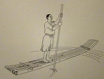 3 4![]() 5 ![]() 3. 人々は浮かんで流れゆく木々などの物体を観察したことであろう。 [拡大画像: x27782.jpg] 4. 羊皮袋などで作った水上移動手段を考案した。 [拡大画像: x27783.jpg] 5. 竹を束ねて筏を作った。 [拡大画像: x27784.jpg] |