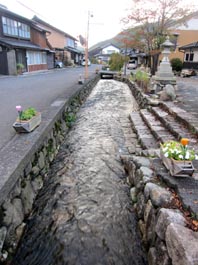 集落の家並みに沿って600mにわたり続く水路は、近年改修され幅も狭くなっているが、舟川の遺構として保存されている。