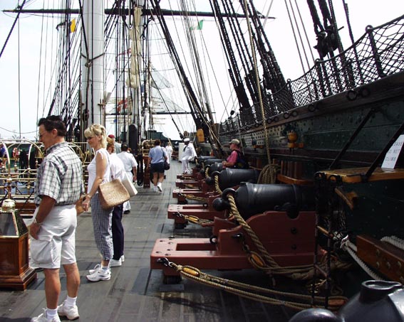 尋ねているようだ(画像 1 )。最上甲板にはずらりと大砲が並ぶ(画像 2 )。