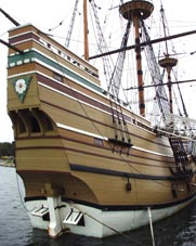コッド半島近くのプリモス沖に錨を降ろした。上陸地プリモス (Plymouth) の海岸には、清教徒一団(ピルグリム・ファーザー Pilgrim Fathers)の