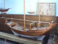 センター入り口にはシンボリックな小型木造船が展示されている。