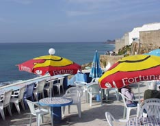 海岸の崖に沿ってテラスが施され、大西洋を見下ろし、潮風に吹かれながら食事できるシーフードレストランなどが