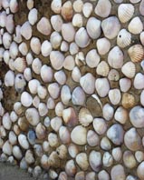に貝殻を埋め込んでいるのを見かけた。安上がりのデコレーションで、どこにでもある風景かもしれないが、