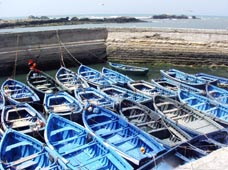 モロッコの海と船の風景。エッサウィラ漁港敷地内から「海の門」をくぐり抜けてメディナに 入ってすぐ海側にある船溜りの風景。