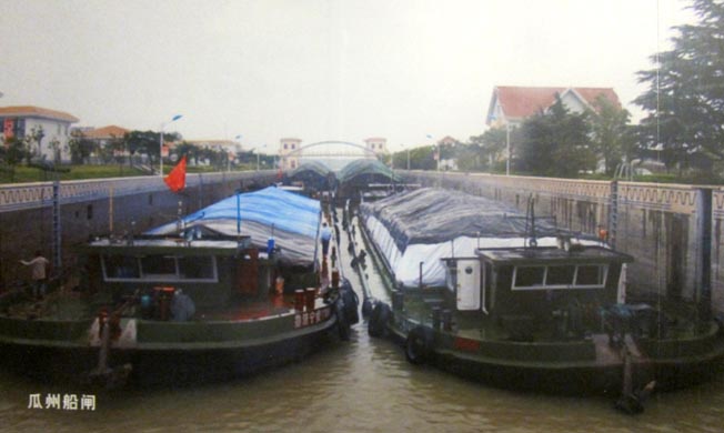 運河の堰や閘門での人力・畜力による船の曳き上げ [京杭大運河博物館]