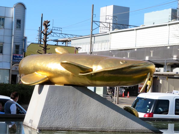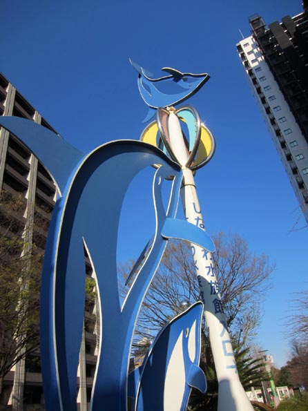 「しながわ水族館」へのゲートウェイに立つイルカ・モニュメント