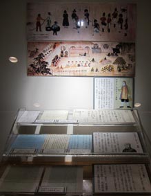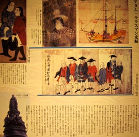 3 4 5![]() 3. 全体。 [拡大画像: x28069.jpg]. 4. 絵馬: 仙台藩士が奉納した女性像。文久3年 (1863年)/白老八幡神社写真提供 白老町教育委員会 キャプションによれば、文久3年、カラフト警備から帰陣した仙台藩医師伊藤藤翁らにより奉納された、ロシア皇帝エカテリーナ2世像 と伝えられる肖像画。 [拡大画像: x28085.jpg] 5. ラクスマンや第二次遣日使節のニコライ・レザノフなどについて展示する。 [拡大画像: x28086.jpg] |