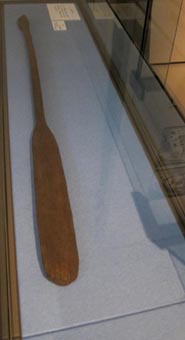 画像の左側の丸木舟は、伊奈町伊奈氏 (いなし) 屋敷跡遺跡から出土した。縄文時代後期(約3,500年前)のものである。県立史跡の博物館蔵。