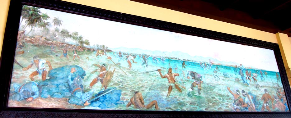 記念碑のすぐそばには、1521年4月マゼラン率いる船隊所属兵士とラプラプ酋長率いる兵士との激しい戦闘を描く壁画(下方参照)が