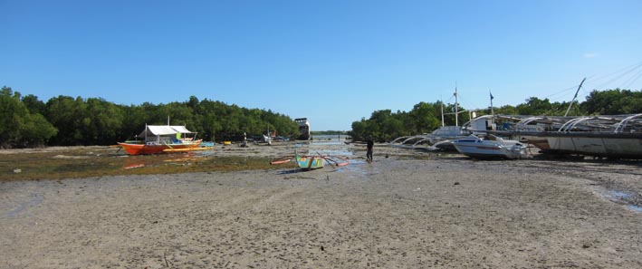 見渡せば、マングローブが生い茂る森の中にいるようである。引き潮のためにかなり沖まで海底が露出している。