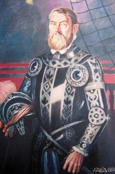 所縁の小島である。 マゼラン船隊は、スペインから大西洋を西廻りで「南の海」(後の太平洋のこと) への通過路を探索し、スパイス諸島などのアジア東方の 地をめざすという探検航海に出立した。1521年4月上旬、マゼラン一行はセブ島の海岸にやってきて、 スペイン人入植の第一歩を記した。4月下旬には、マクタン島の海岸において酋長ラプラプ (chieftain Lapu-Lapu) が 率いる兵士と激しい戦闘となり、マゼランは傷を負い1521年4月27日にこの世を去った。 マゼラン船隊のうちの一隻であるビクトリア号が、J.S.エルカーノの指揮の下、1521年5月1日にセブ島から船出し、1522年9月6日に スペイン南部のサン・ルカール・デ・バラメーダに帰着した。かくして、270余名の乗組員のうち生き残り帰還したのはわずか 18名であった。彼らは人類史上初めて世界周航を果たした。 画像1&2はマゼランの肖像画である。画像3はラプラプのそれである。画像4では、ラプラプとその兵士がマゼランとその兵士と マクタン島の海岸で激しく戦闘する場面を描いている(画像1-4の出典: セブ旧市街地のサン・ペドロ要塞 Fort San Pedroでの展示)。