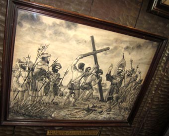 1 2![]() 3 ![]() 1. マゼラン・クロスを収納したパビリオン内部。 [拡大画像: x28148.jpg] 2. キャプションには、"The planting of a cross by Ferdinand Magellan in Cebu on April 14, 1521." と記される。画像出典: サン・ペドロ要塞での展示。 [拡大画像: x28174.jpg] 3. パビリオン全景。 [拡大画像: x28172.jpg] |