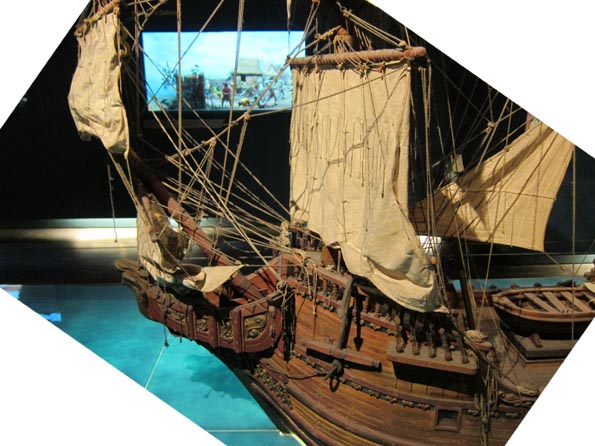 されるガレオン船の模型である。展示説明パネルには次のように記される。