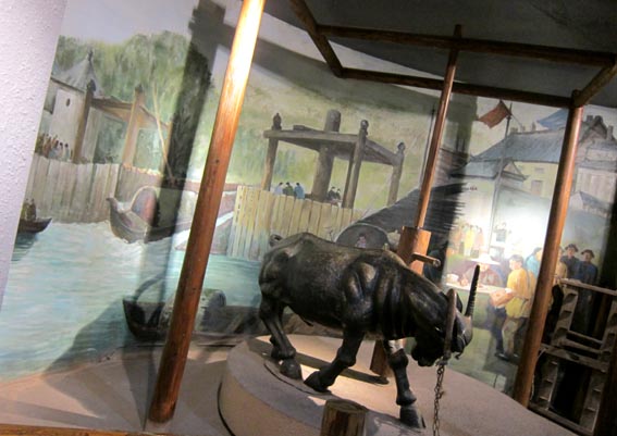 運河の堰や閘門での人力・畜力による船の曳き上げ [京杭大運河博物館]