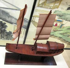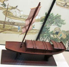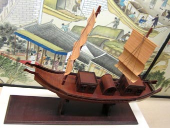 「唐代漕運」展示全景。[拡大画像: x28455.jpg: 「唐代漕運」説明書き][拡大画像: x28457.jpg: 唐の玄宗と韋堅の説明書き]