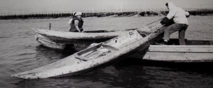画像1~5のいずれも「大森海苔ふるさと館」で展示される、昭和20~30年代の海苔船の写真である。