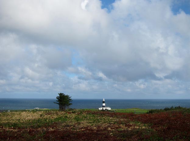 へ車で2、30分のところにある能取岬は、オホーツク海に向かってせり出す断崖絶壁の地であり、灯台はその断崖の淵近くに立つ。
