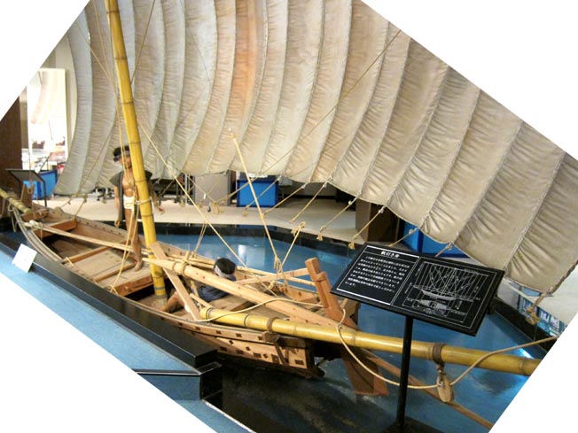 2/3で、長さ約6m、幅約1m、帆柱の高さ約5.5mである。模型の帆はFRP製であるが、実際の帆は木綿製である旨、案内板に記される。