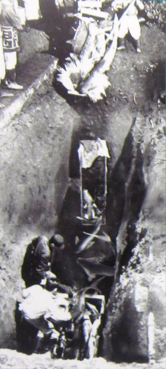 競りにかけて一般流通させることはできず、その処分策として同市場の一角に大きな穴を掘り、その地中に埋め込んだ。