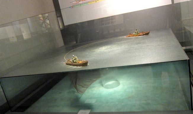 画像は、昭和5年頃における揚繰り網漁(あぐりあみりょう)の模型である(模型の縮尺=1:100)。