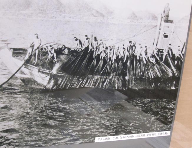 また、別のキャプションによれば、「・・・・・・一方、水産業も、イワシ漁は地曳網(じびきあみ)漁法からアグリ網漁法へ変わり、銚子などの