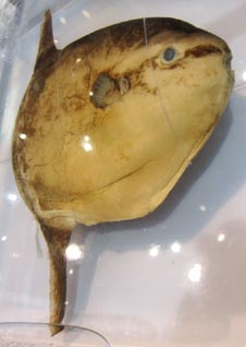因みに、体重は最大2トンにもなる。魚体の後ろ半分が切り取られたように見える魚形が特徴の一つである。