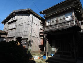 2 3![]() 2. 「穴口邸」(あなぐちてい)。廻船主伊藤伊左衛門家の屋敷。越前三国港付近から千石船で運ばれた笏谷石(しゃくたにいし) の敷石、広い庭がある。 3. 「三角家」(さんかくや)。1846年(弘化3年)の水害後に羽茂大橋付近から移築された建物。敷地に合わせて三角形に切り詰め て造作されている。 |