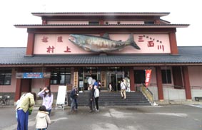 [参考]「イヨボヤ会館」本館(画像2)から地下道(サーモンロード)を通って三面川に向かった先には、サケの「三面川鮭観察自然館」がある。