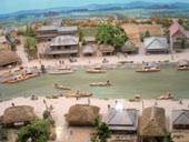 ・ 「河岸のにぎわい: 佐原の町並み再現」: 利根川支流の小野川の佐原河岸(さわらがし)を再現したミニ・ジオラマ、